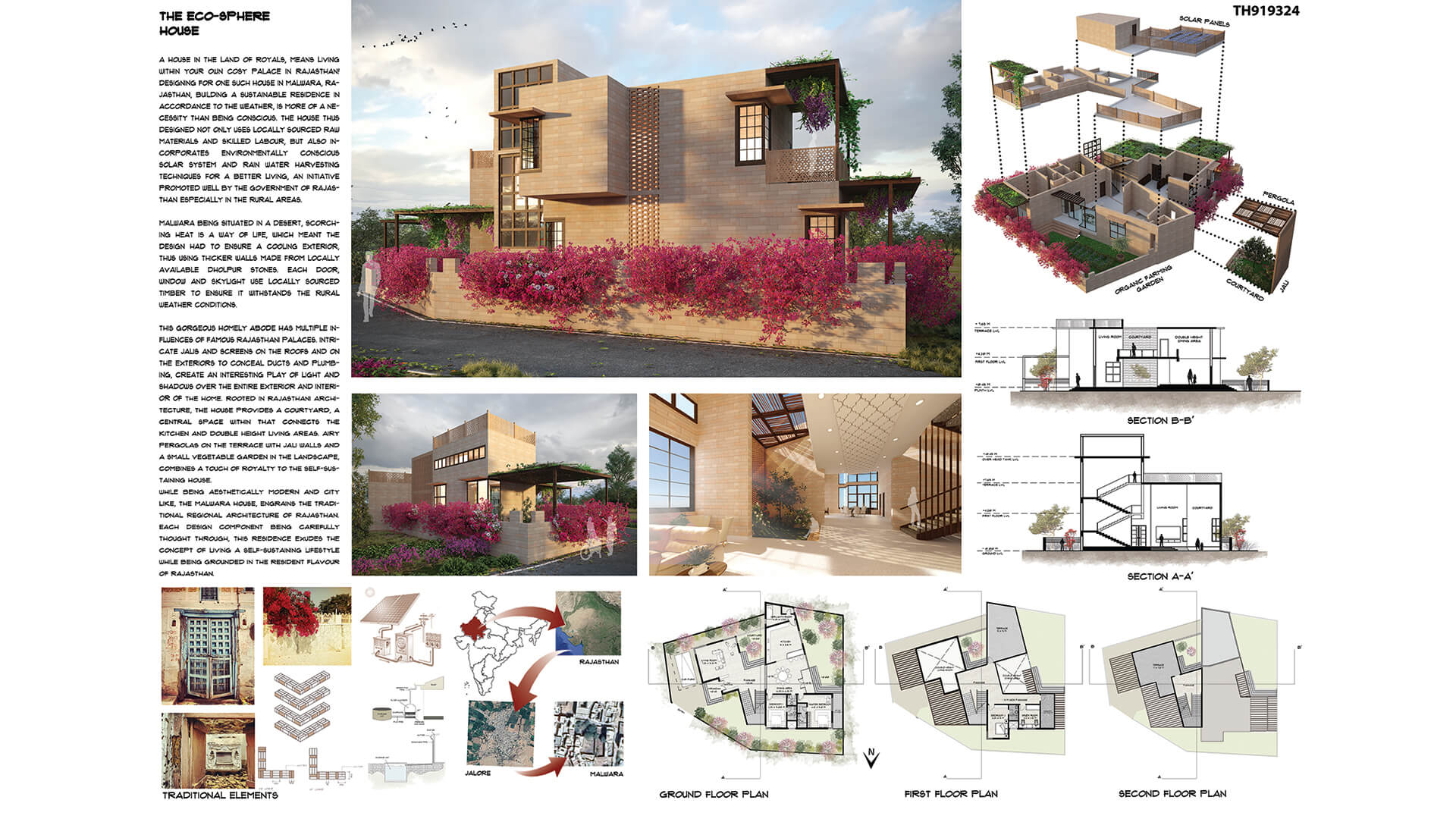 A house in the land of royals, means living within your own cosy palace in Rajasthan! Designing for one such house in Malwara, Rajasthan, a local native village located about 750kms north from Mumbai, the financial capital of India, building a sustainable residence in accordance to the weather, is more of a necessity than being conscious. The house thus designed not only uses locally sourced raw materials and skilled labour, but also incorporates environmentally conscious solar system and rain water harvesting techniques for a better living, an initiative promoted well by the government of Rajasthan especially in the rural areas.